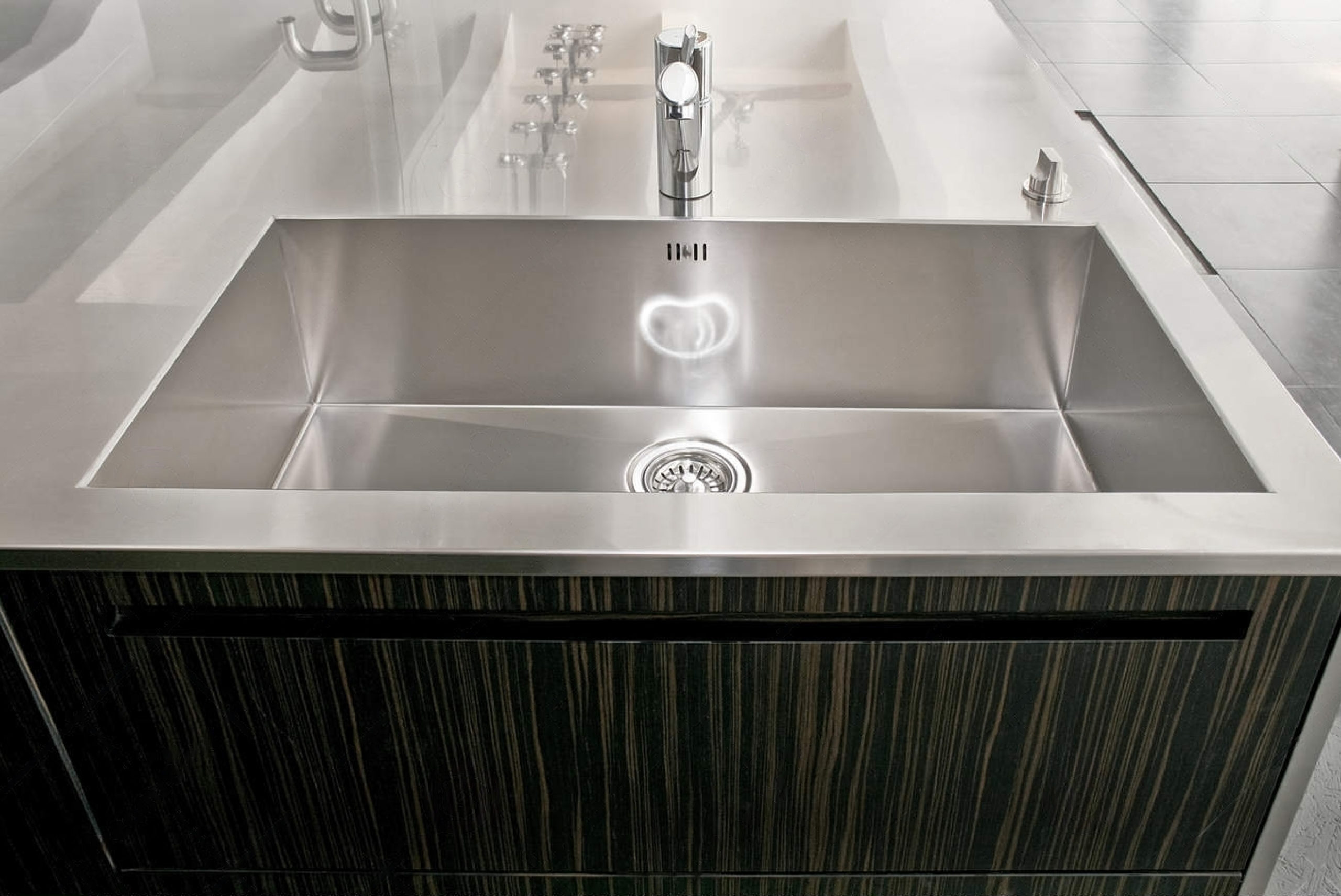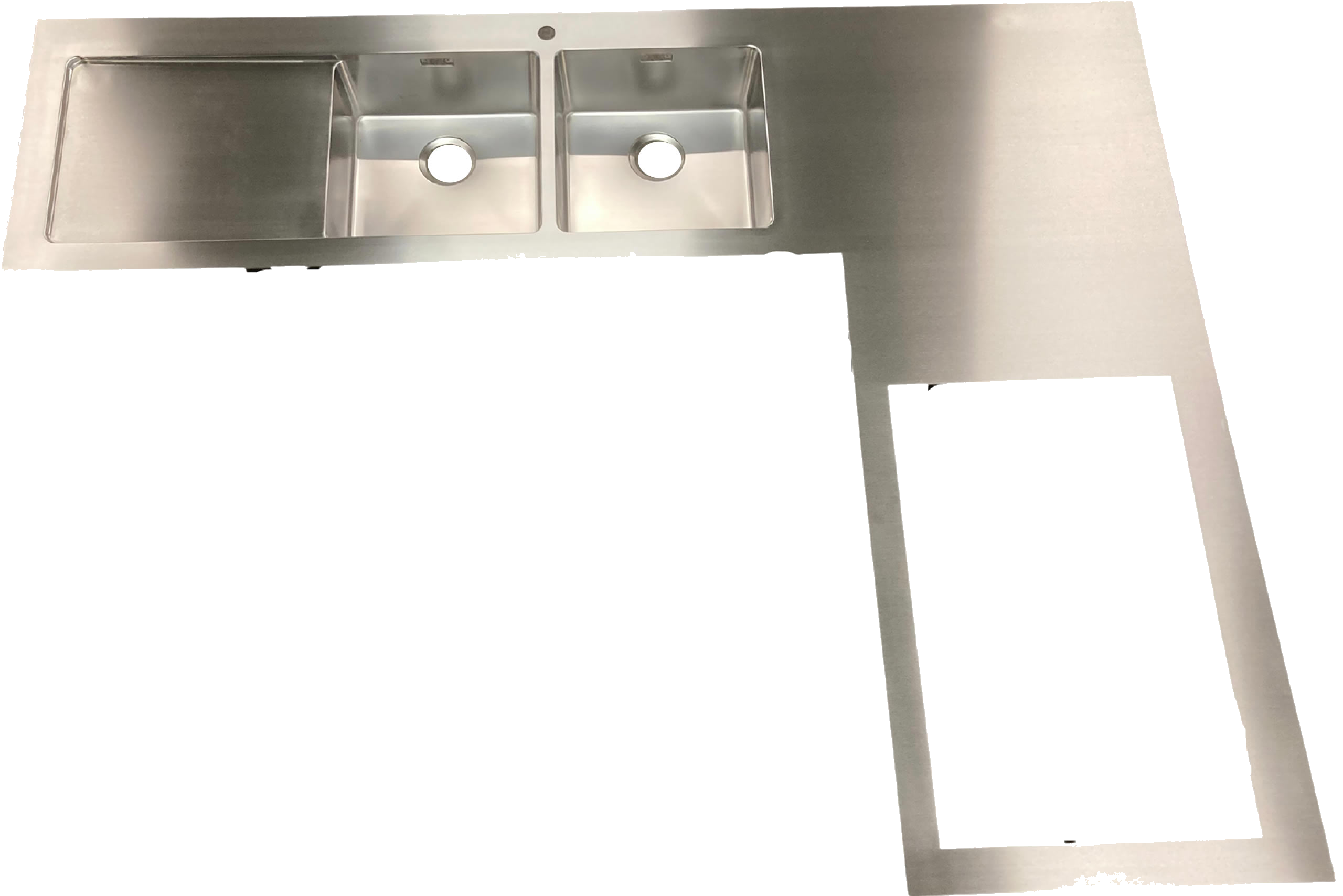 Edelstahlarbeitsplatte - Wenn dünnes Material verwendet wird, ist es günstiger als massive Platten. Edelstahl warm gewalzt, roh ist die günstige Alternative für Massive Edelstahlplatten. Edelstahl ist langlebig, sehr robust und pflegeleicht. Becken sind fugenfrei integriert. Kochfelder können flächenbündig eingebaut werden. Bis 8 x 2 Meter fugenfrei herstellbar. Bei Massivarbeitsplatten ist eine Stärke bis 20mm möglich. Gerne informieren wir Sie über Edelstahl ausführlich!